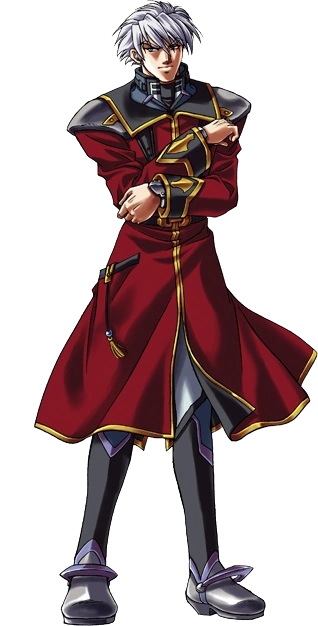 The self-styled "sword that smites evil" (悪を断つ剣 aku wo tatsu tsurugi), Sänger Zonvolt is a very honorable individual who fights for his own personal beliefs. Hardened by a long career as a soldier, Sänger has an amazing amount of wisdom on the battlefield and can sense the potential in allies and enemies alike. His demeanor and manners of speech are reminiscent of a samurai, and as such, Sänger and his personal machines are always depicted with a Katana -- in the case of the latter, all of his machines have a gigantic, specially-made Katana called the Zankantou. Sänger also has a tendency to speak with yojijukugo -- four-kanji idioms -- a trait which his fellow swordmanship student, Brooklyn Luckfield, inherits in future games. Examples of such phrases are ichiisenshin (一意専心, "wholeheartedness"), ittou ryoudan (一刀両断, "one cut slices in two"), and jinba ittai (人馬一体, "horse and ride are as one"), though Sänger uses an alternate version (刃馬一体, "blade and horse are as one").