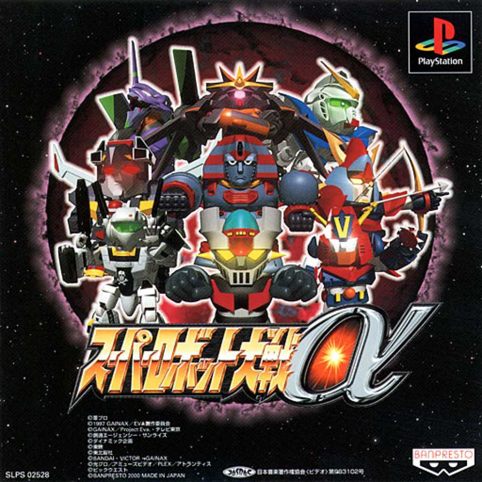 Super Robot Wars Alpha (スーパーロボット大戦α) is part of the Super Robot Wars franchise, and was published for the Sony PlayStation by Banpresto. It is the initial game of the Alpha Series, which spans the Playstation and the Sony Playstation 2 platforms.