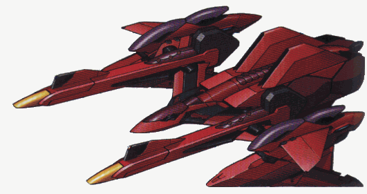 The Vegalion's body is dominated by the sharp, aerodynamic lines common to most Armored Modules. Its most distinctive feature is the two G-Accelerator Driver nacelles on either side of its main fuselage, attached near the cockpit. Painted in Sleigh Presty's personal color scheme, the Vegalion is decorated in red, with small highlights of black and gold.